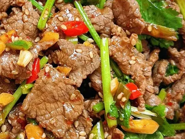 准备食材:牛肉,香菜,蒜末,葱花,小米辣,白芝麻,辣椒面。